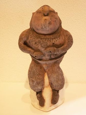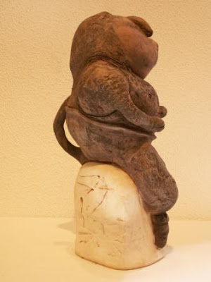 Se observarem bem a peça (e em geral na maior parte das minhas peças) a cabeça, os olhos, a boca ou os braços....raramente correspondem à forma humana clássica. Não quero fazer "Vénus de Milo" ou esculturas cerâmicas super perfeitas. No meu acto criativo impera a imaginação e o vale tudo. Quer dizer que os olhos de uma figura humana podem ser pequeninos como os de um porco ou que os braços podem ser duas pernas de sapateira.