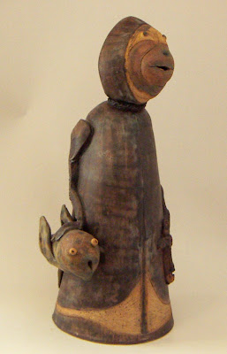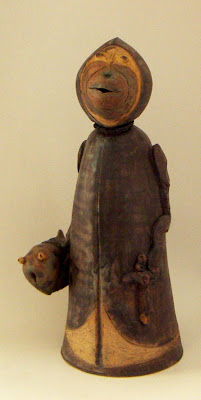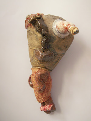Working as I do in a realistic form, it is almost impossible to imagine how you create the strange and erotic forms you do.Your work and loose glazes have surprise and texture, indicating a lively and free imagination! Chicken headed hands, eyeballs appearing here and there, faces, at first sight quirky, then on second view, like caricatures of your own face!"