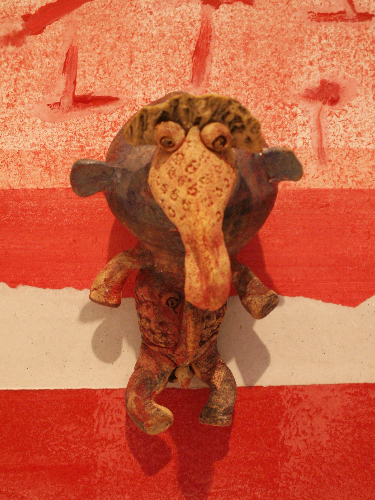 Esta escultura cerâmica vai estar presente na minha próxima exposição intitulada "Bichos e afins" a inaugurar no dia 6 de Fevereiro. A fonte de inspiração foi um morcego especializado em chupar sangue do gado. Para isso ele desloca-se no chão, faz uma incisão na pata do animal e depois é só beber. Escusado será dizer que para mim o nome é mais malicioso que um simples morcego que...